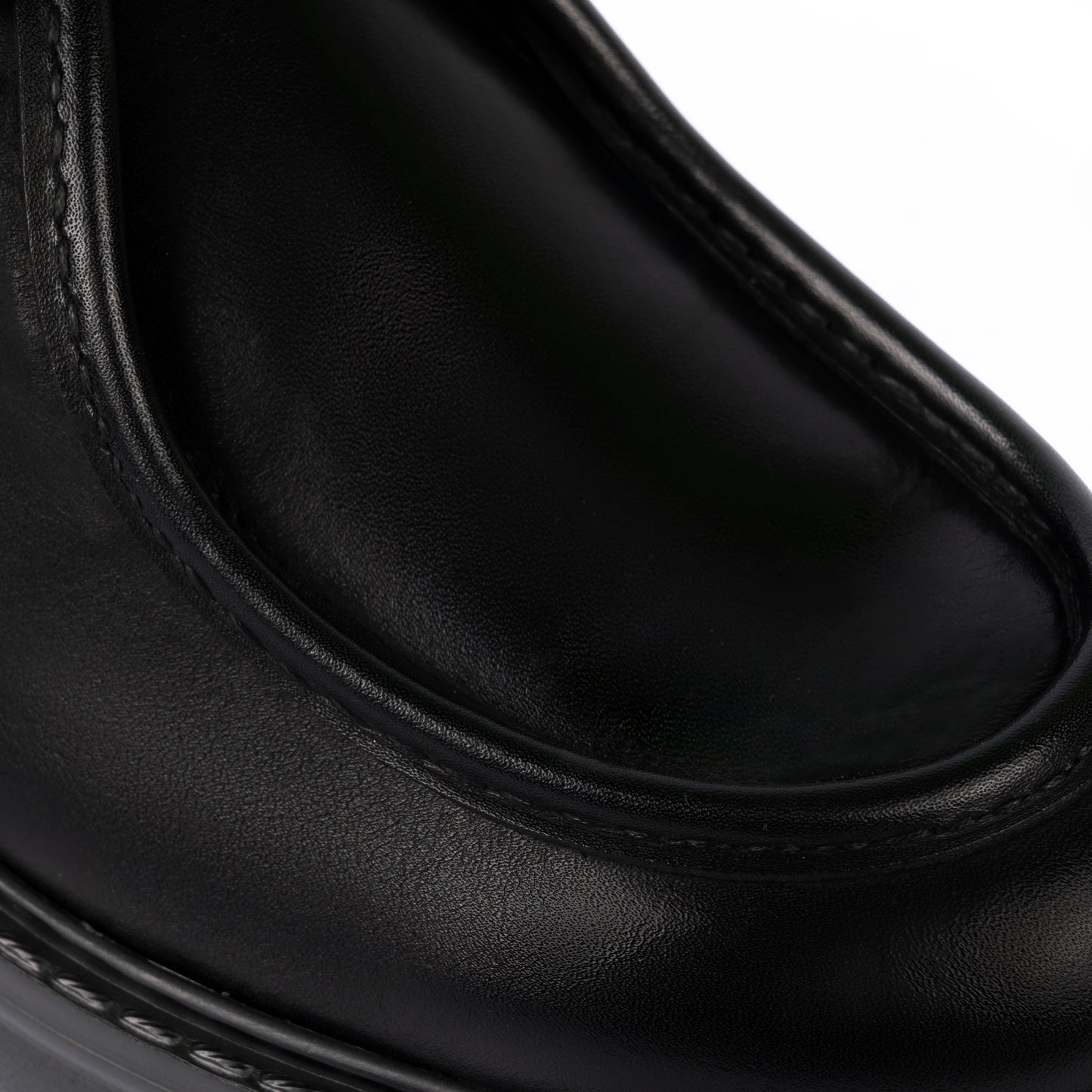 Scarpa dallo stile deciso e raffinato, realizzata con maestria artigianale per chi ricerca un’eleganza contemporanea senza rinunciare al comfort. La tomaia in pelle di vitello nera di alta qualità offre un aspetto elegante e versatile, ideale per ogni occasione. La costruzione norvegese conferisce carattere e robustezza, mentre la suola oversize in EVA Extralight garantisce leggerezza, stabilità e un comfort duraturo durante tutta la giornata.