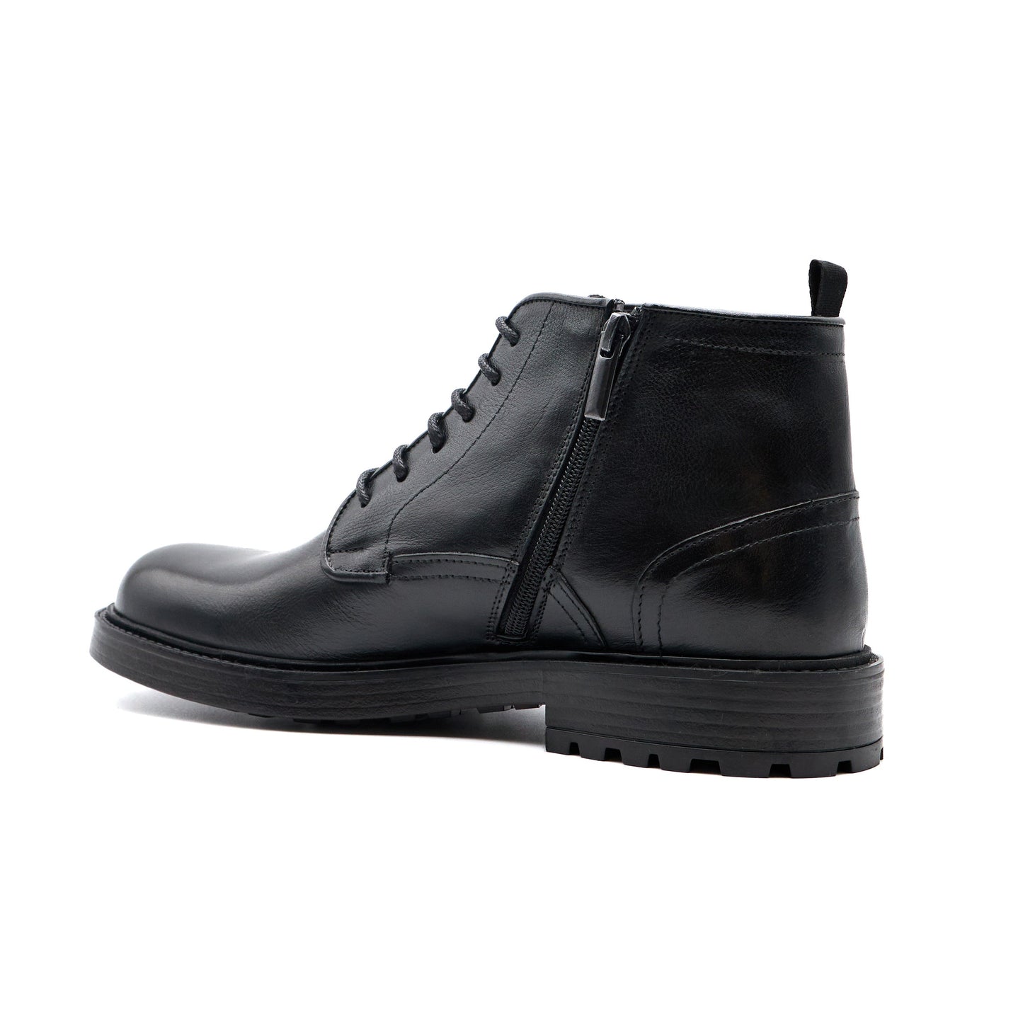 Stivaletto mid realizzato in pregiata pelle di vitello toscano nera, un modello essenziale che combina stile, comfort e qualità artigianale. Le linee pulite e la silhouette equilibrata lo rendono un alleato versatile, perfetto sia per look formali che casual contemporanei. La suola in gomma garantisce stabilità e resistenza, mentre la chiusura stringata assicura una calzata sicura e confortevole. Un modello intramontabile che riflette tutta l’eleganza e il carattere del Made in Italy.