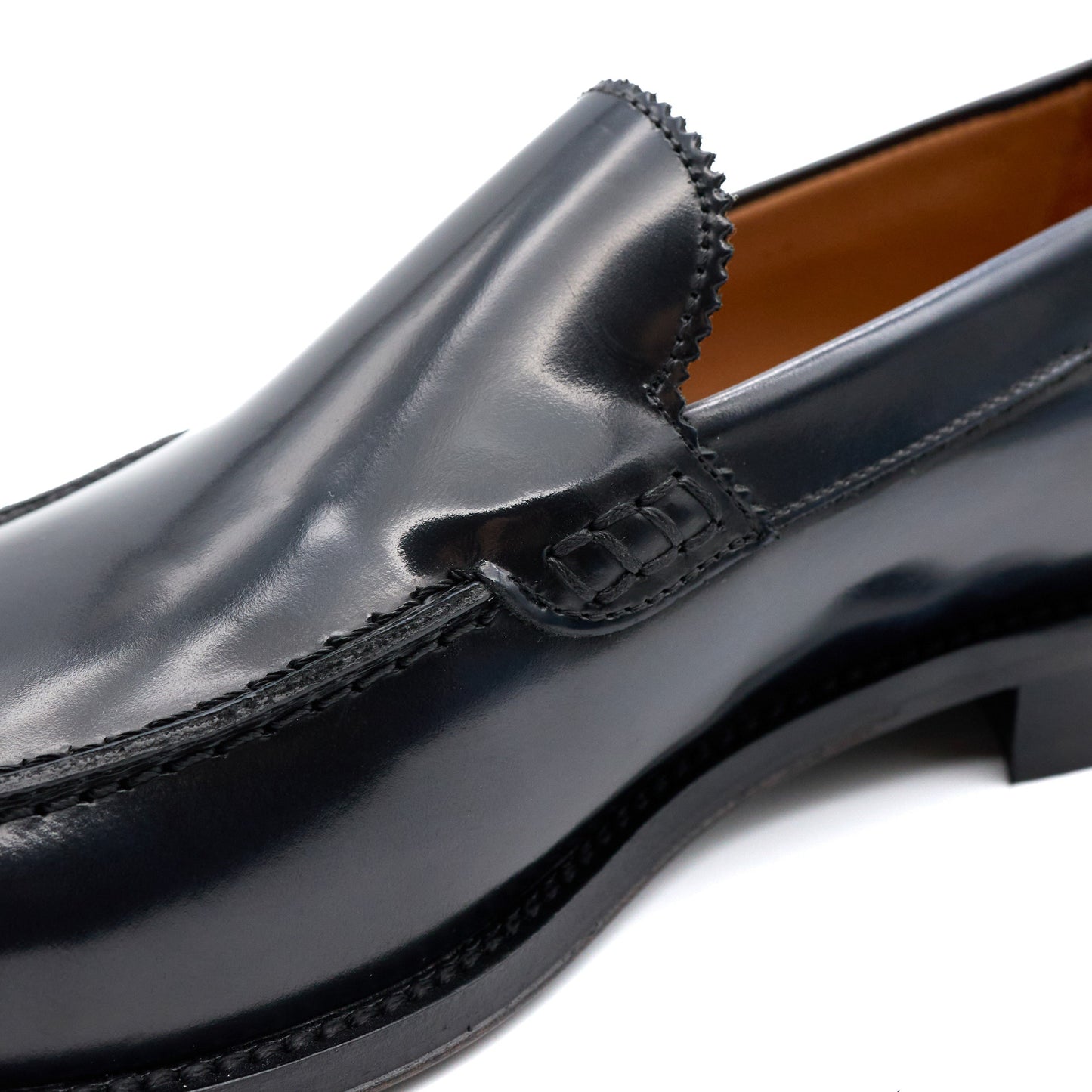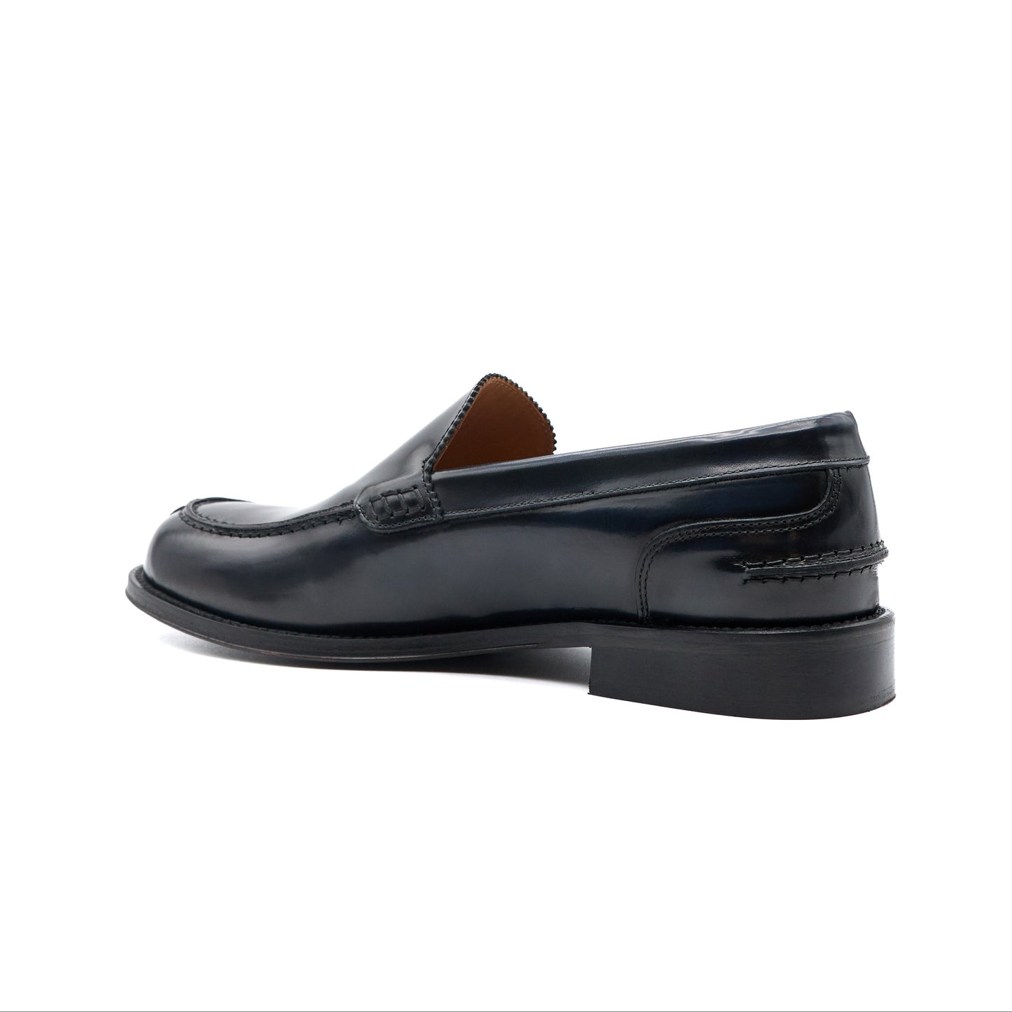 Mocassino College in vitello abrasivato blu liscio, dall’eleganza essenziale e intramontabile. La tomaia minimalista mette in risalto la lucentezza del pellame, mentre le cuciture discrete valorizzano la pulizia delle linee. La lavorazione artigianale si unisce alla praticità della suola in cuoio con inserto antiscivolo, che assicura comfort e sicurezza in ogni passo. Una calzatura versatile e raffinata, perfetta per chi desidera distinguersi con sobrietà e stile.