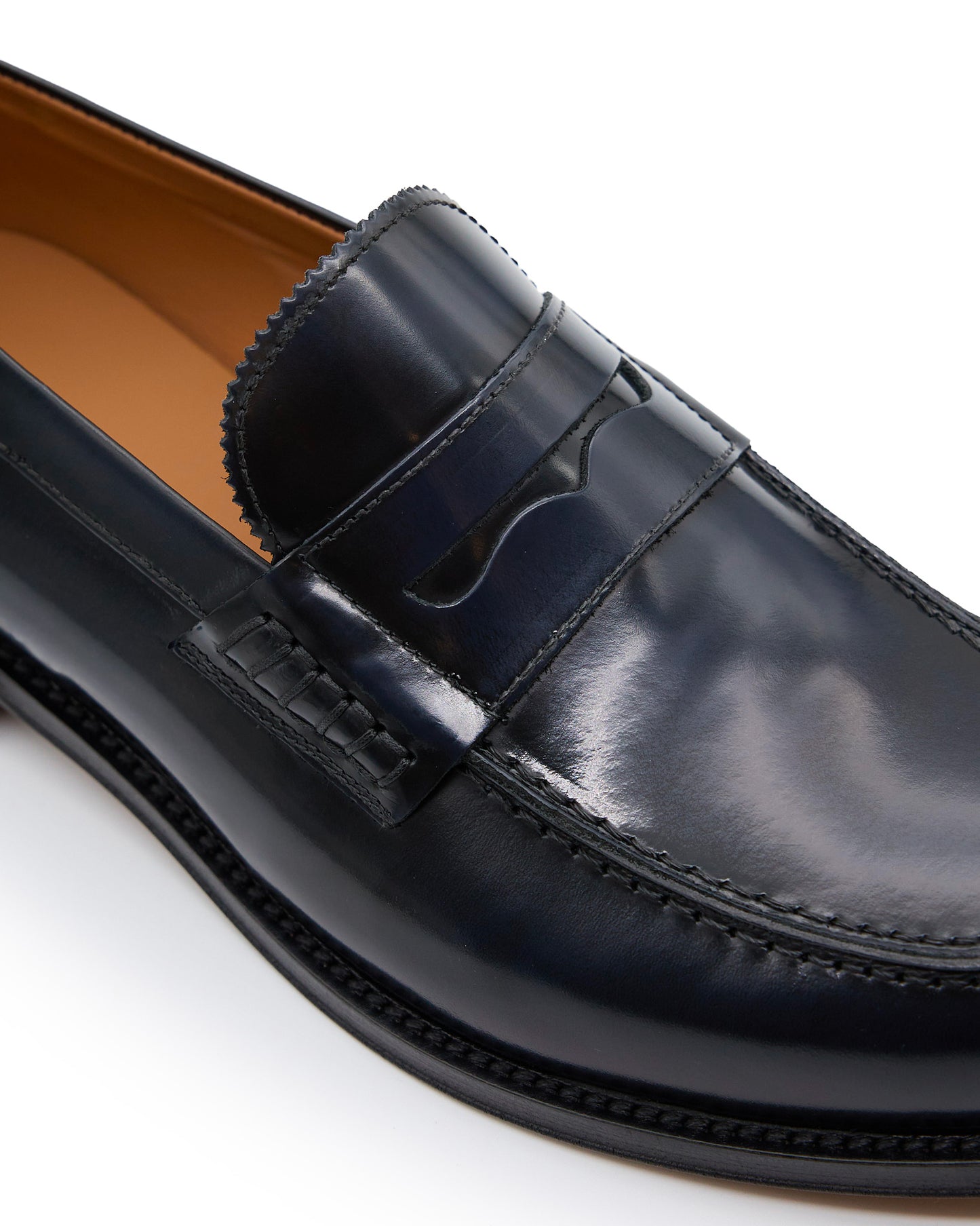Mocassino College in vitello abrasivato blu, dal design elegante e intramontabile. La finitura lucida mette in risalto i riflessi intensi del colore, donando profondità e personalità alla calzatura. Il classico mascherino frontale e le cuciture artigianali esaltano la cura dei dettagli, mentre la suola in cuoio con inserto antiscivolo assicura comfort, stabilità e resistenza. Un modello raffinato e versatile, ideale per completare con stile sia look formali che casual ricercati.