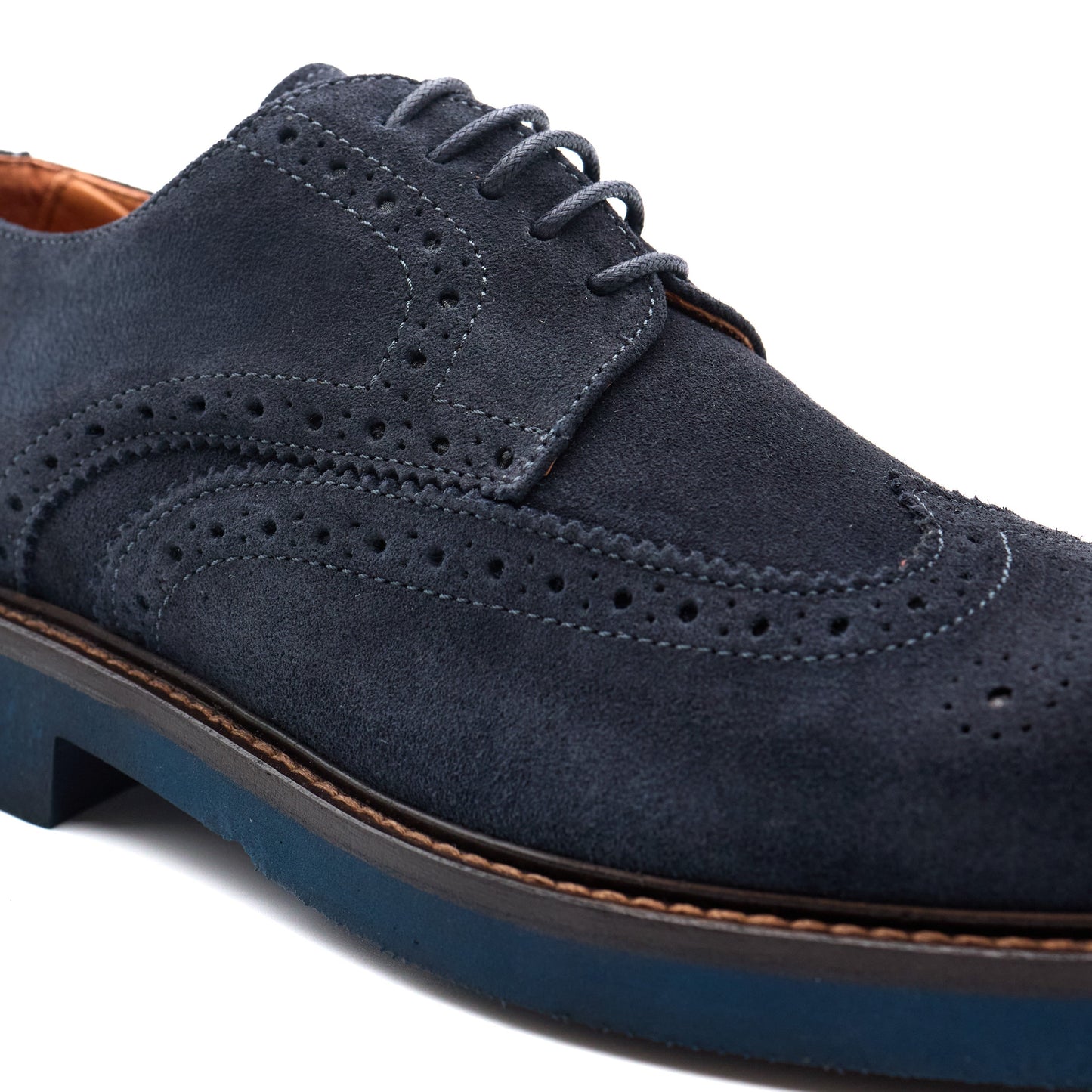 Derby realizzata in morbida suede blu, un modello dal fascino contemporaneo che unisce eleganza e comfort in perfetto equilibrio. Le tipiche cuciture e traforature decorative conferiscono carattere e raffinatezza, mentre la suola in EVA Extralight blu tono su tono dona leggerezza e un tocco di modernità. Ideale per chi cerca una scarpa versatile, perfetta per look business casual o outfit più ricercati. Realizzata con la cura artigianale tipica del Made in Italy, questa derby rappresenta la scelta giusta per uno stile distintivo e sempre attuale.
