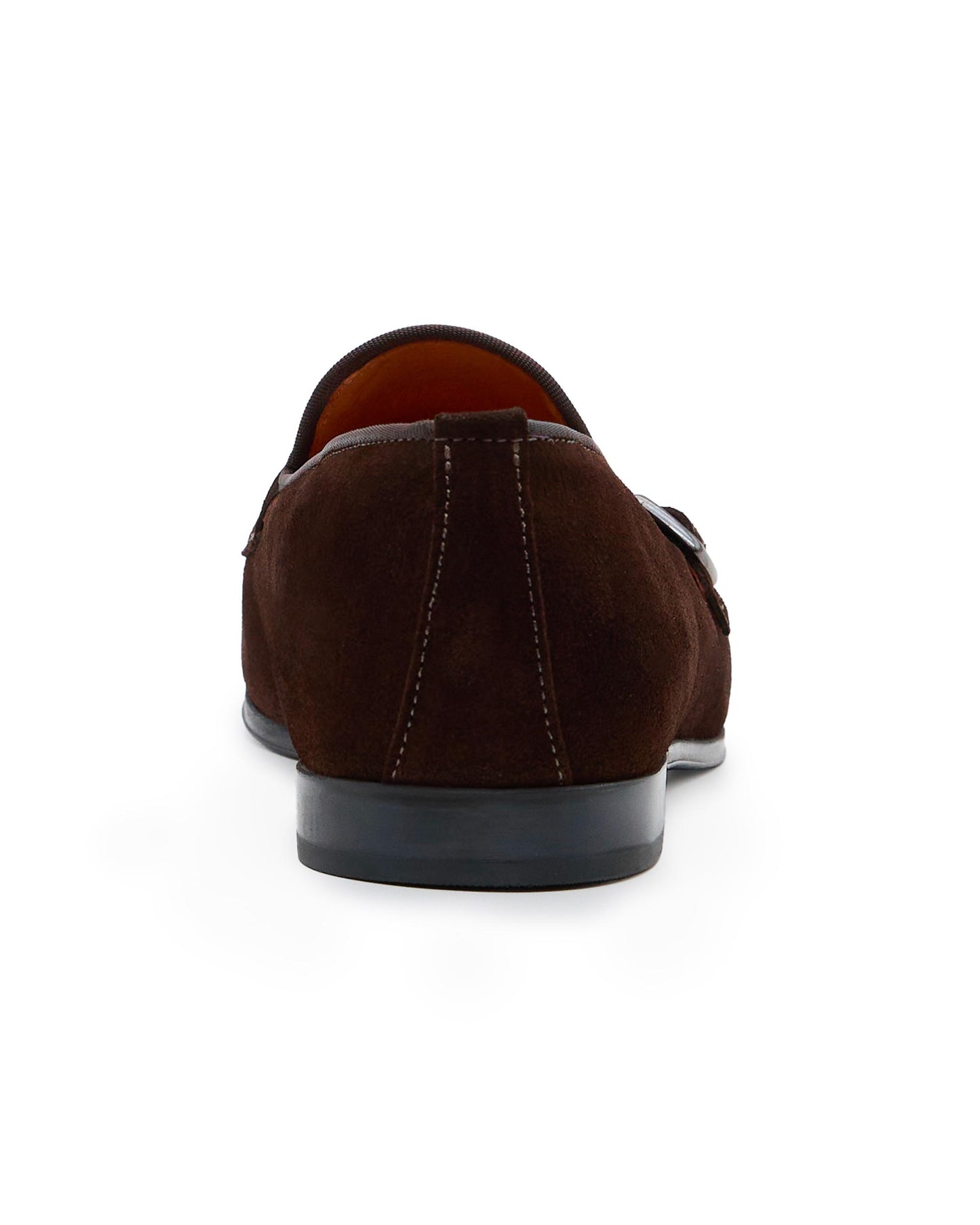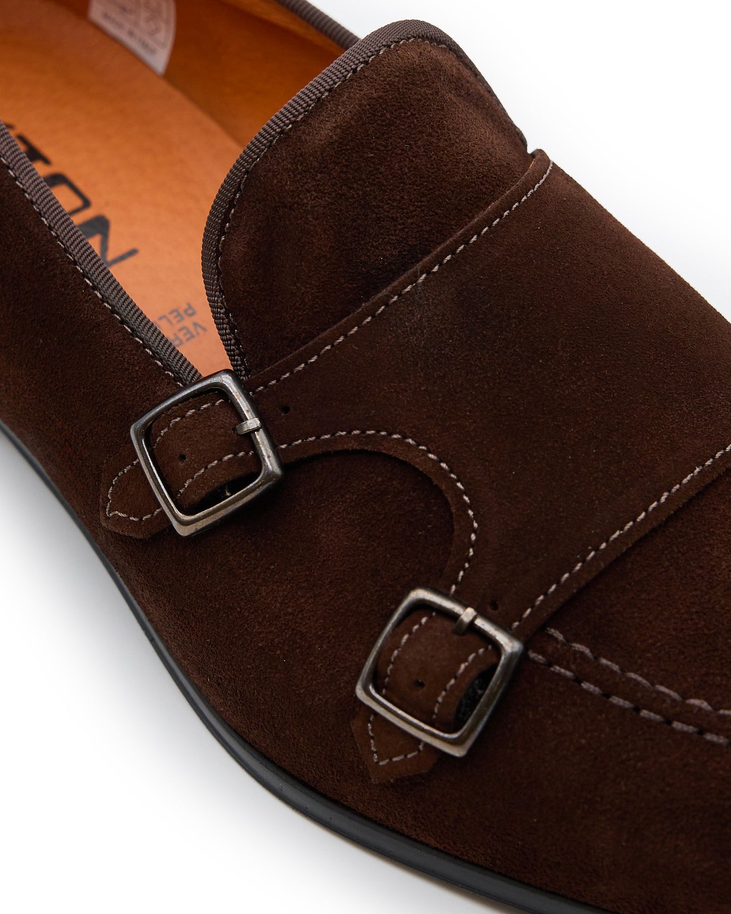 Un elegante mocassino in morbido suede terra, impreziosito da doppie fibbie metalliche che ne esaltano il design moderno e sofisticato. La suola in gomma garantisce comfort e stabilità, rendendo questa scarpa perfetta per chi cerca un look raffinato ma pratico. Ideale per completare sia outfit formali che casual, aggiungendo un tocco di classe e versatilità a ogni look.